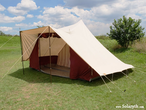 日本ではほとんど見かけることが無い大型コットンテント。長期の設営にも耐えうるとてもゴージャスな作りです。